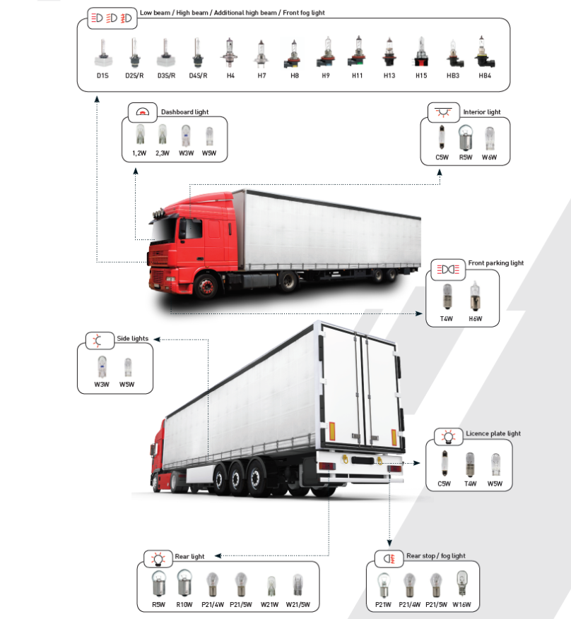 Tipi di lampadine Champion® per veicoli commerciali